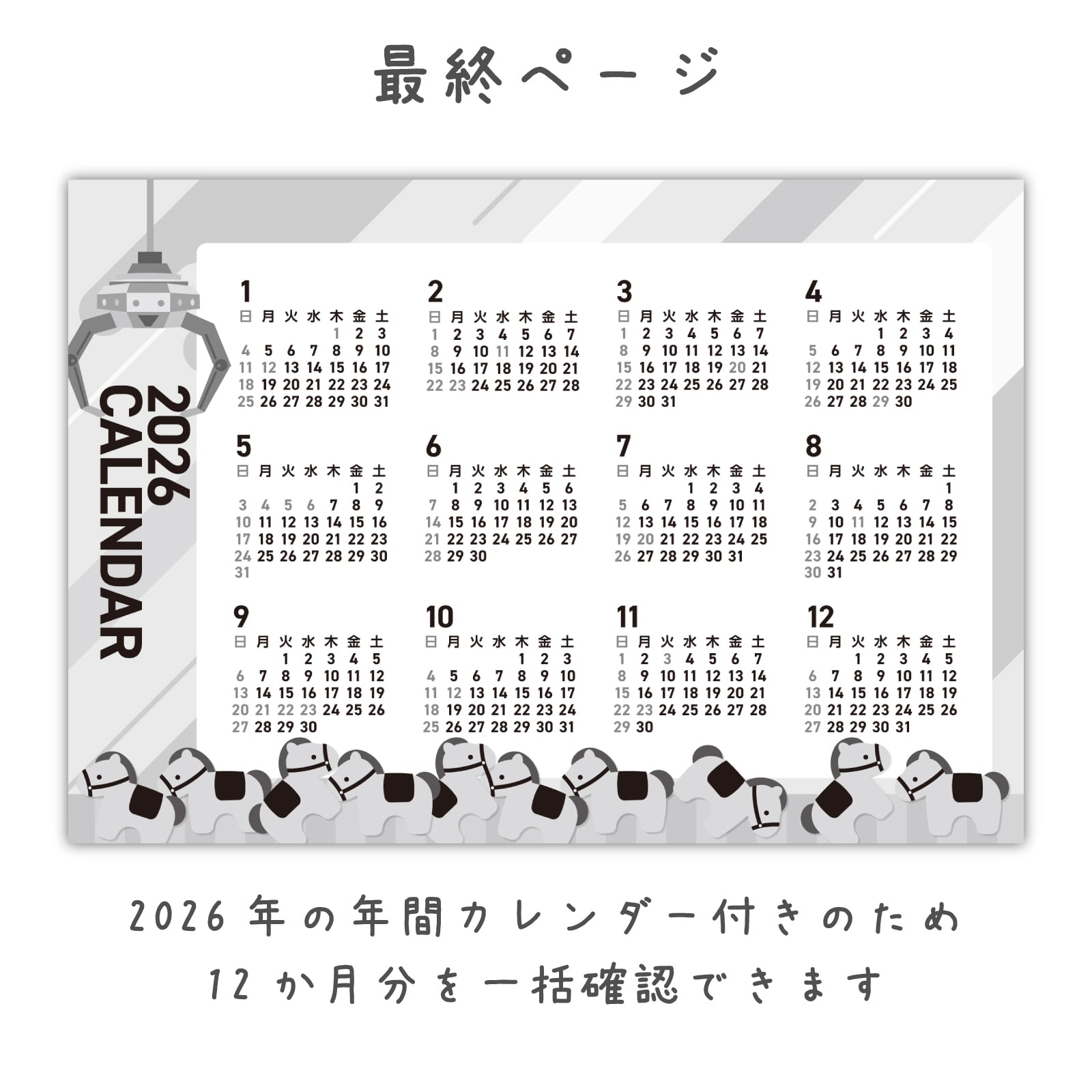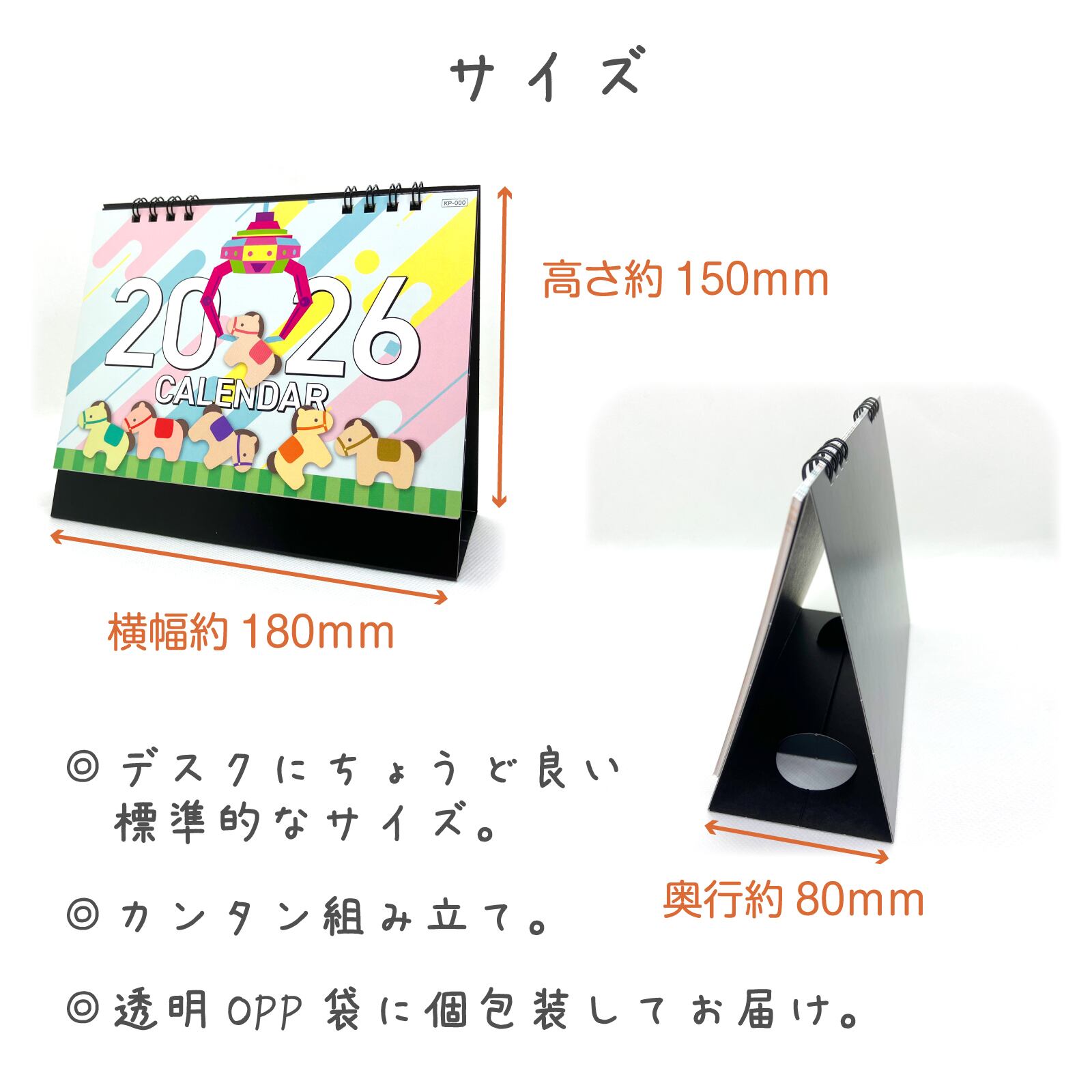 50冊入り 卓上カレンダー 2026年 ポップでキュートなデザイン 標準180×150mm 【干支(うま年)】