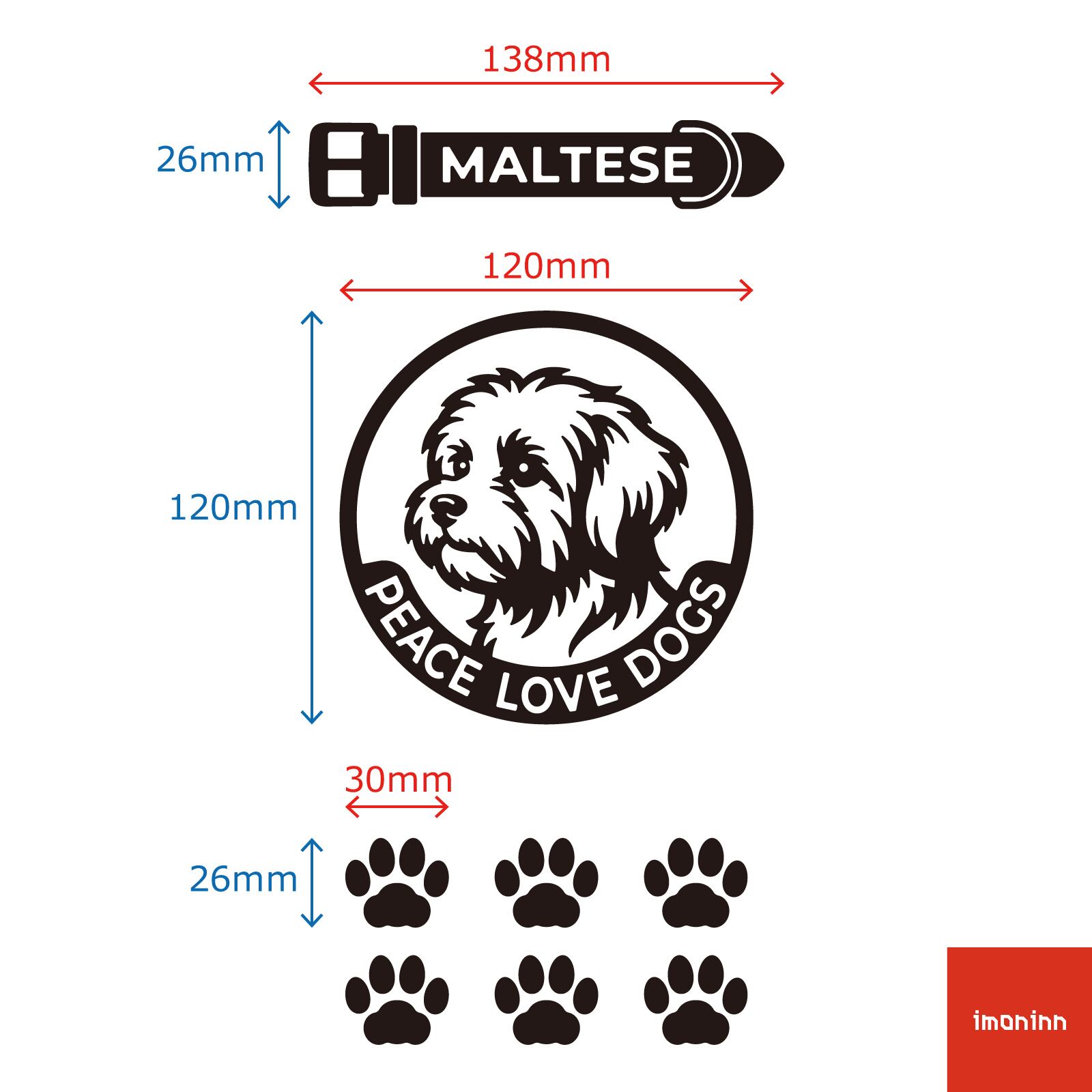 DOG IN CAR ステッカー 〈PEACE LOVE DOGS〉 3点セット 犬ステッカー 日本製 〈Aタイプ〉 【08 マルチーズ】《色選べます》