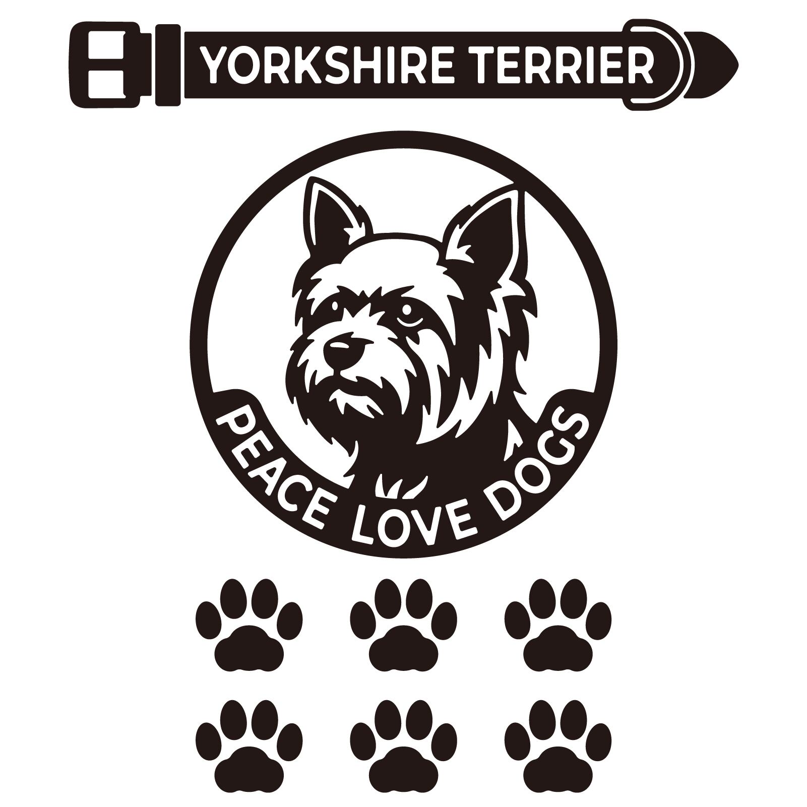 DOG IN CAR ステッカー 〈PEACE LOVE DOGS〉 3点セット 犬ステッカー 日本製 〈Aタイプ〉 【10 ヨークシャーテリア】《色選べます》