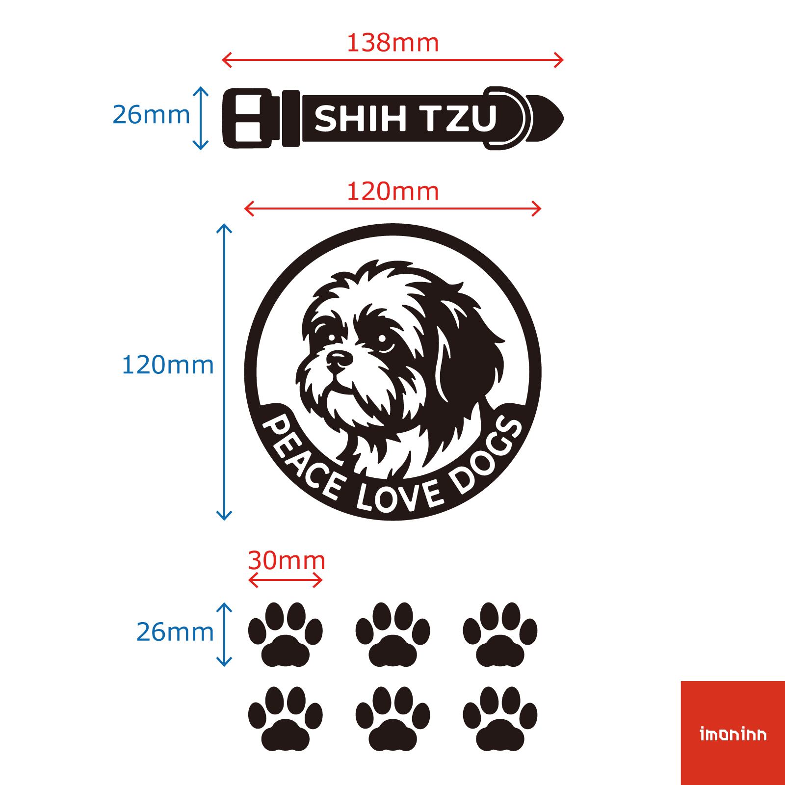 DOG IN CAR ステッカー 〈PEACE LOVE DOGS〉 3点セット 犬ステッカー 日本製 〈Aタイプ〉 【11 シーズー】《色選べます》