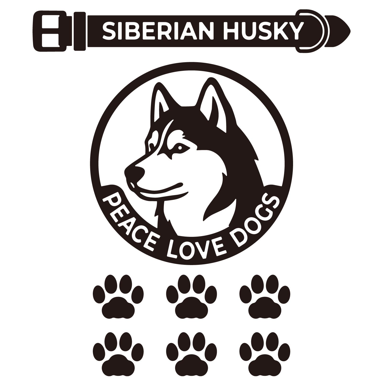 DOG IN CAR ステッカー 〈PEACE LOVE DOGS〉 3点セット 犬ステッカー 日本製 〈Aタイプ〉 【17 シベリアンハスキー】《色選べます》