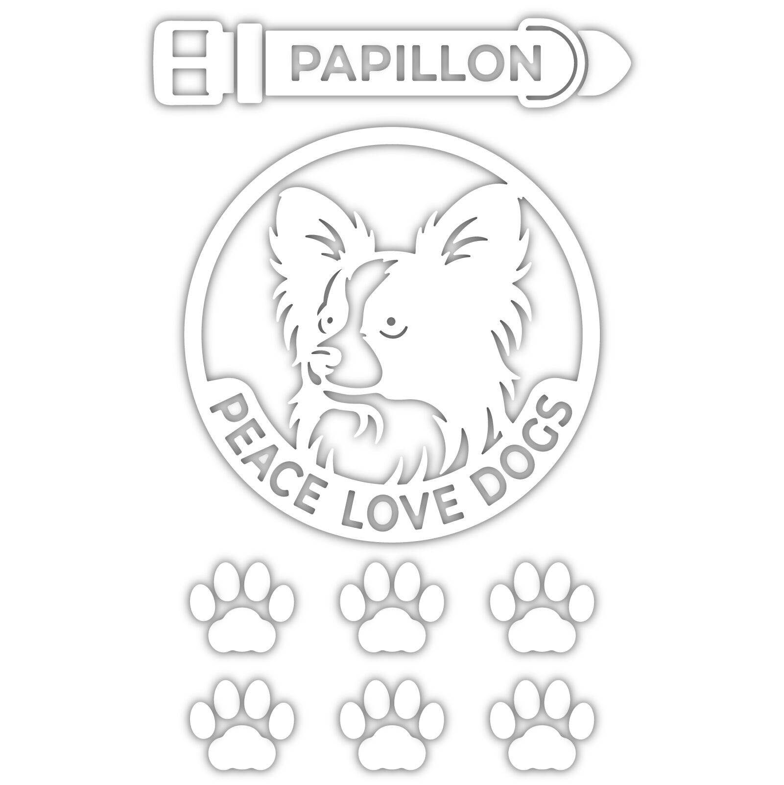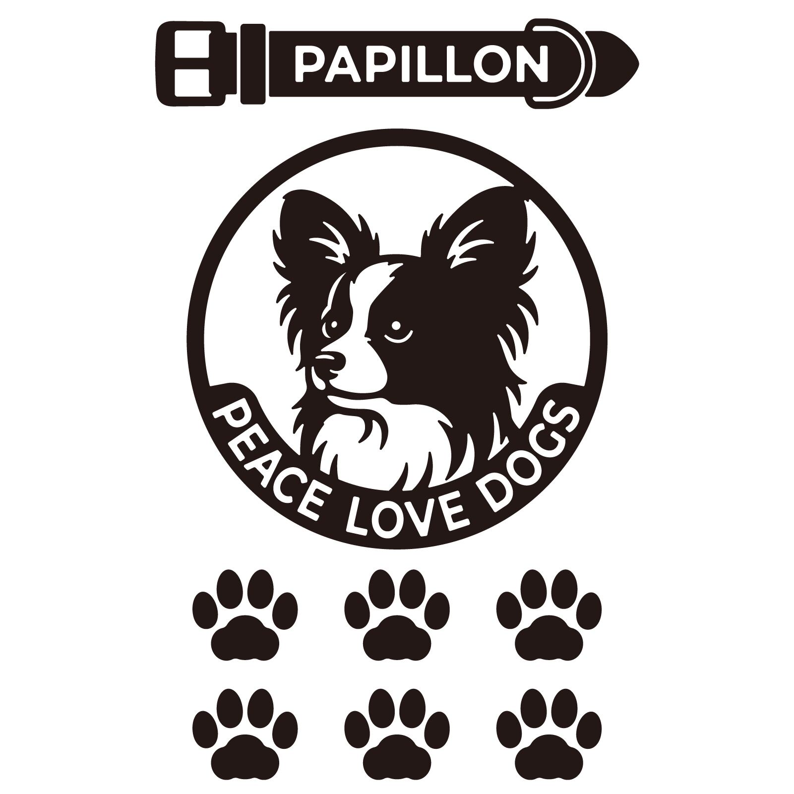 DOG IN CAR ステッカー 〈PEACE LOVE DOGS〉 3点セット 犬ステッカー 日本製 〈Aタイプ〉 【22 パピヨン】《色選べます》
