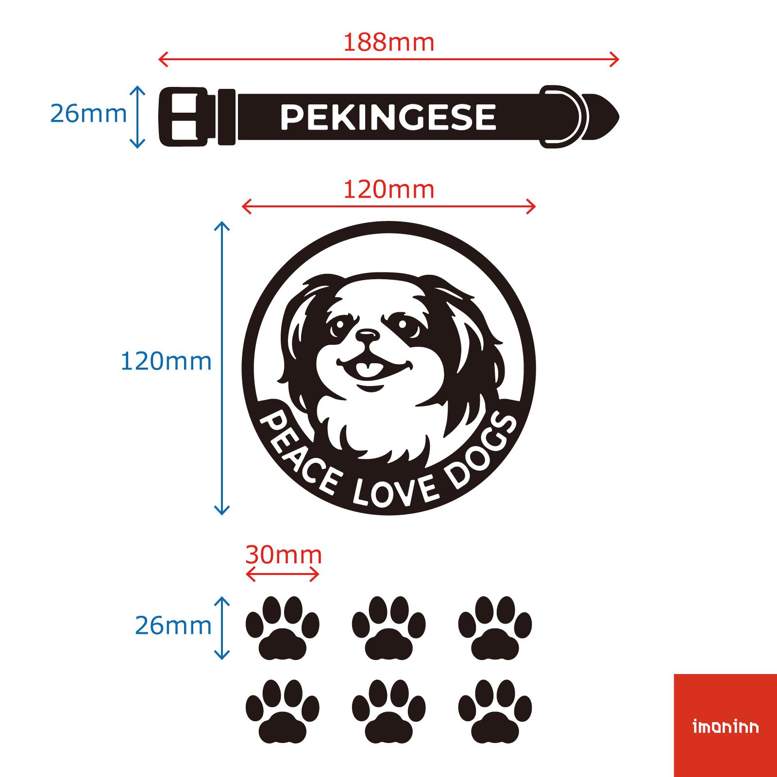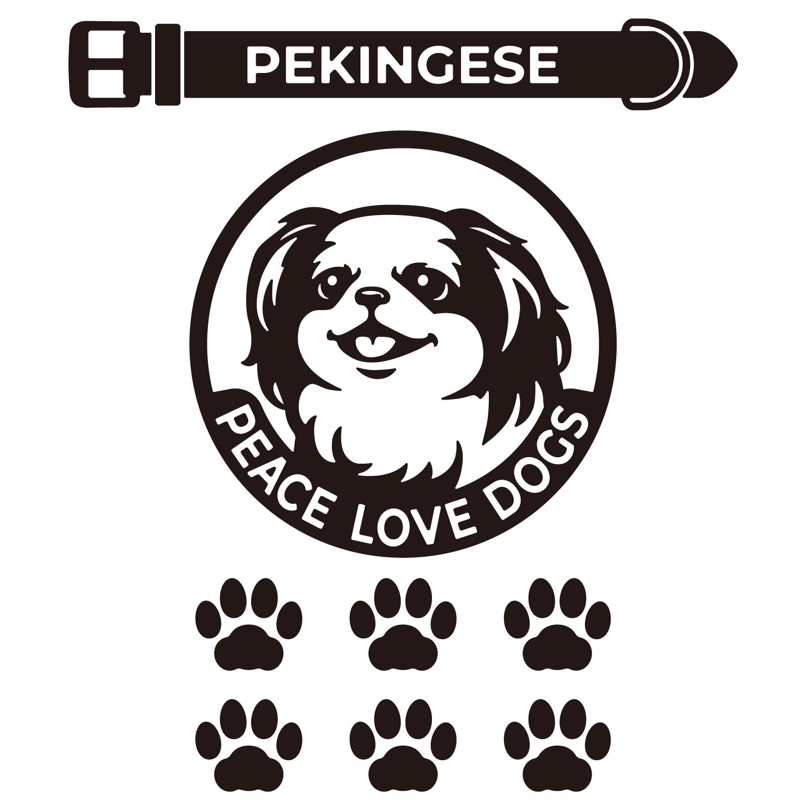 DOG IN CAR ステッカー 〈PEACE LOVE DOGS〉 3点セット 犬ステッカー 日本製 〈Aタイプ〉 【24 ペキニーズ】《色選べます》
