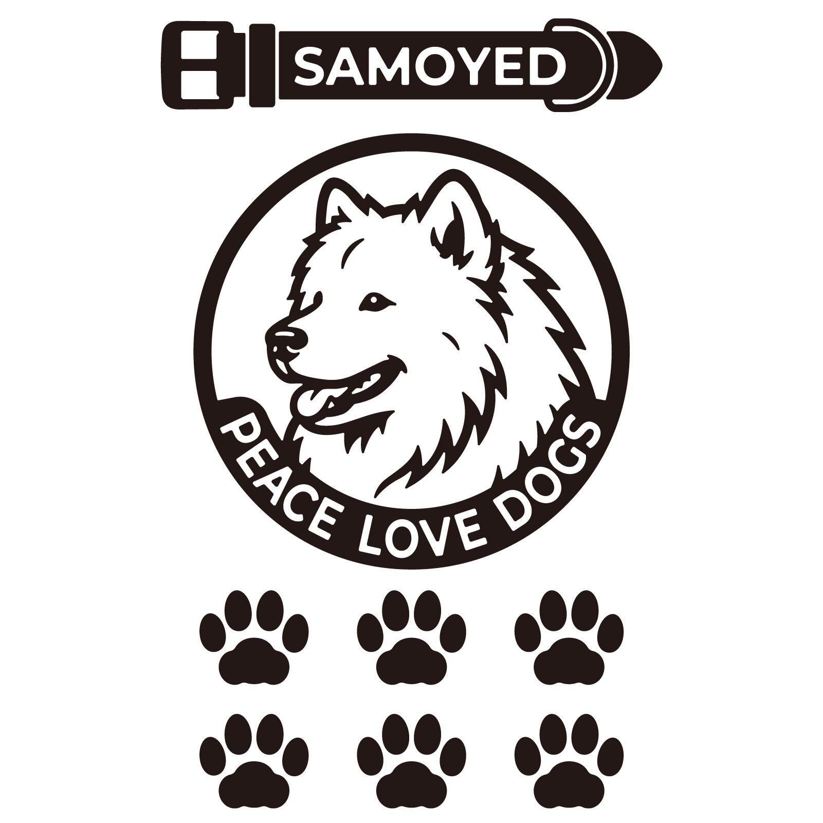 DOG IN CAR ステッカー 〈PEACE LOVE DOGS〉 3点セット 犬ステッカー 日本製 〈Aタイプ〉 【29 サモエド】《色選べます》