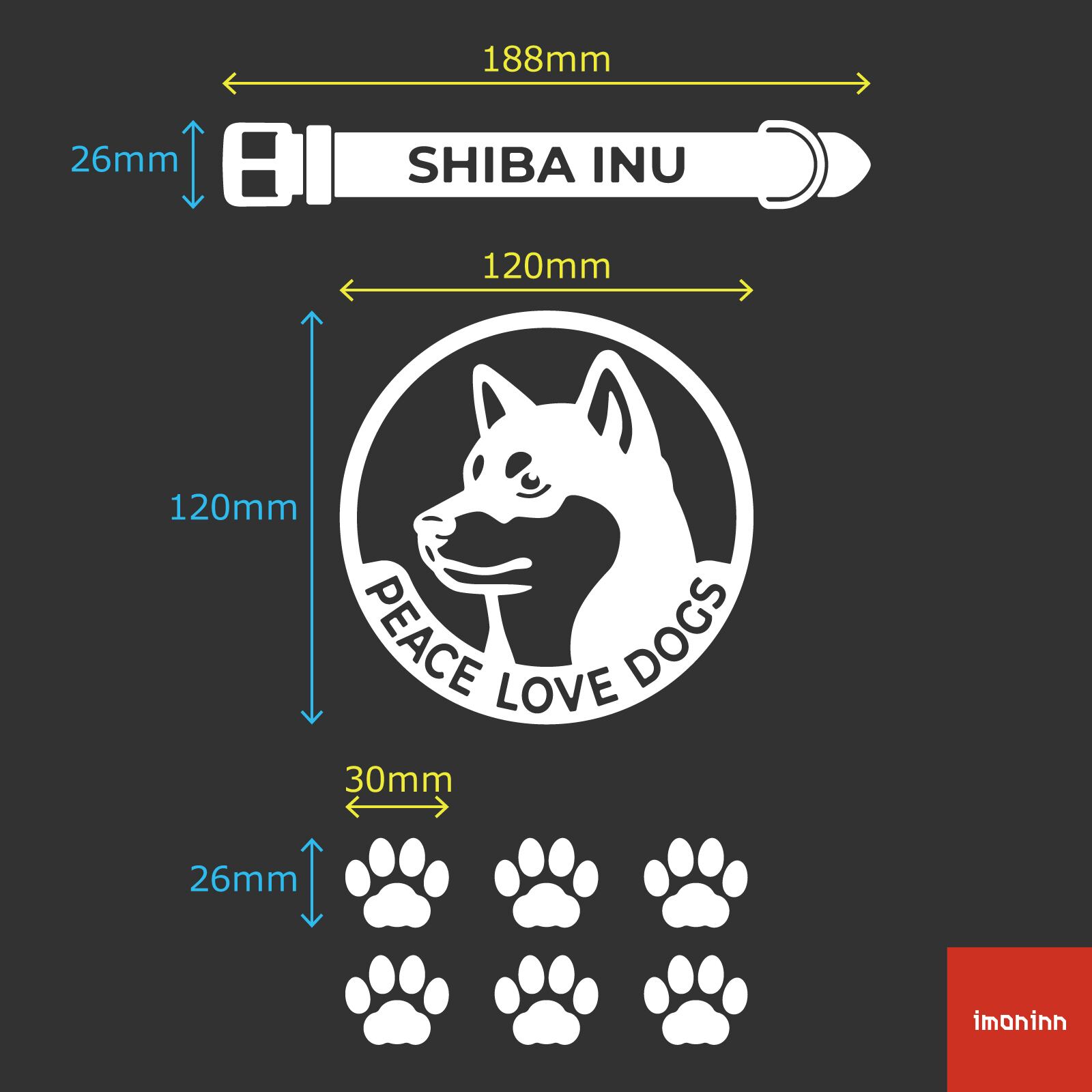 DOG IN CAR ステッカー 〈PEACE LOVE DOGS〉 3点セット 犬ステッカー 日本製 〈Bタイプ〉 【01 柴犬・豆柴】《色選べます》