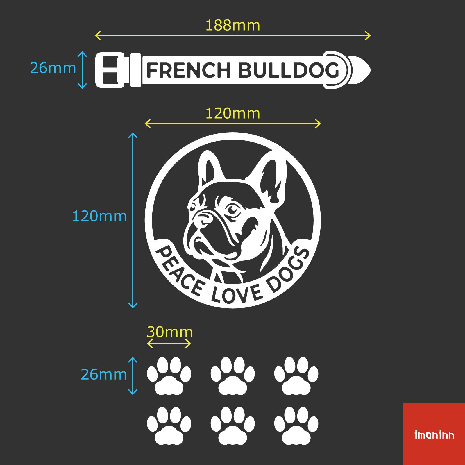 DOG IN CAR ステッカー 〈PEACE LOVE DOGS〉 3点セット 犬ステッカー 日本製 〈Bタイプ〉 【07 フレンチブルドッグ】《色選べます》