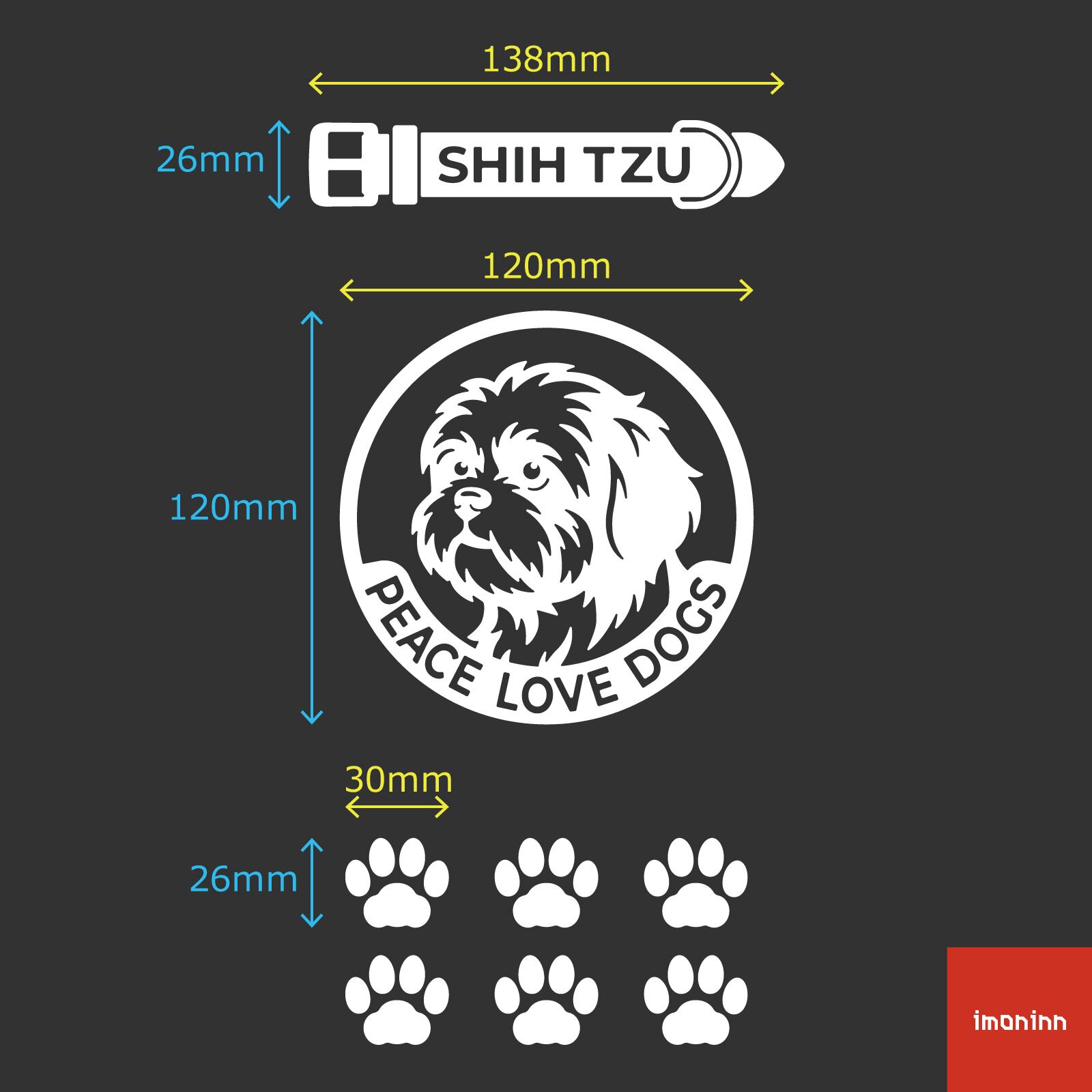 DOG IN CAR ステッカー 〈PEACE LOVE DOGS〉 3点セット 犬ステッカー 日本製 〈Bタイプ〉 【11 シーズー】《色選べます》