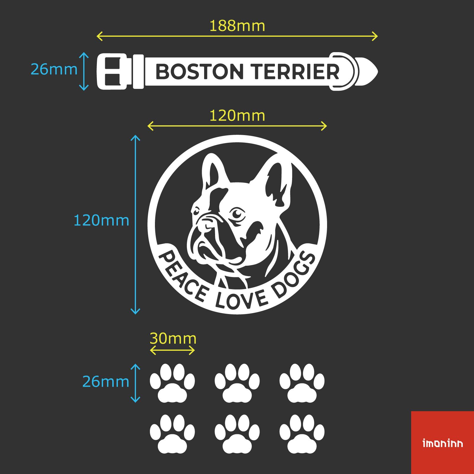 DOG IN CAR ステッカー 〈PEACE LOVE DOGS〉 3点セット 犬ステッカー 日本製 〈Bタイプ〉 【21 ボストンテリア】《色選べます》