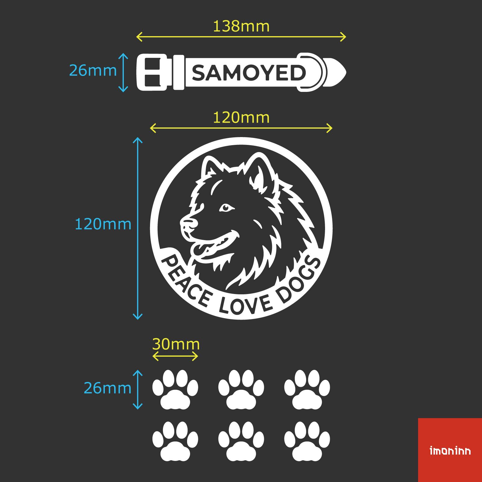 DOG IN CAR ステッカー 〈PEACE LOVE DOGS〉 3点セット 犬ステッカー 日本製 〈Bタイプ〉 【29 サモエド】《色選べます》