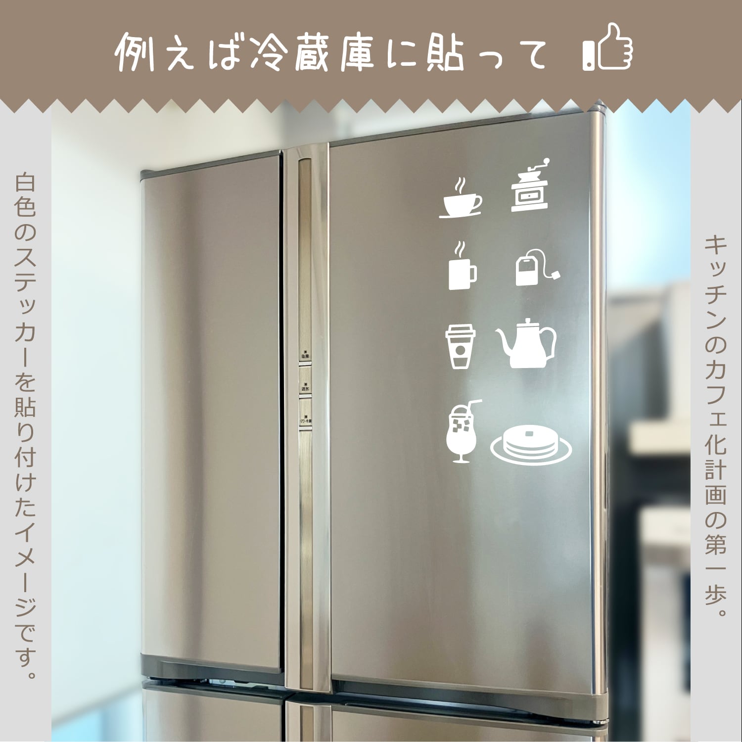 ◎冷蔵庫や、キッチン周りへ貼り付けて、カフェ風にしましょう。