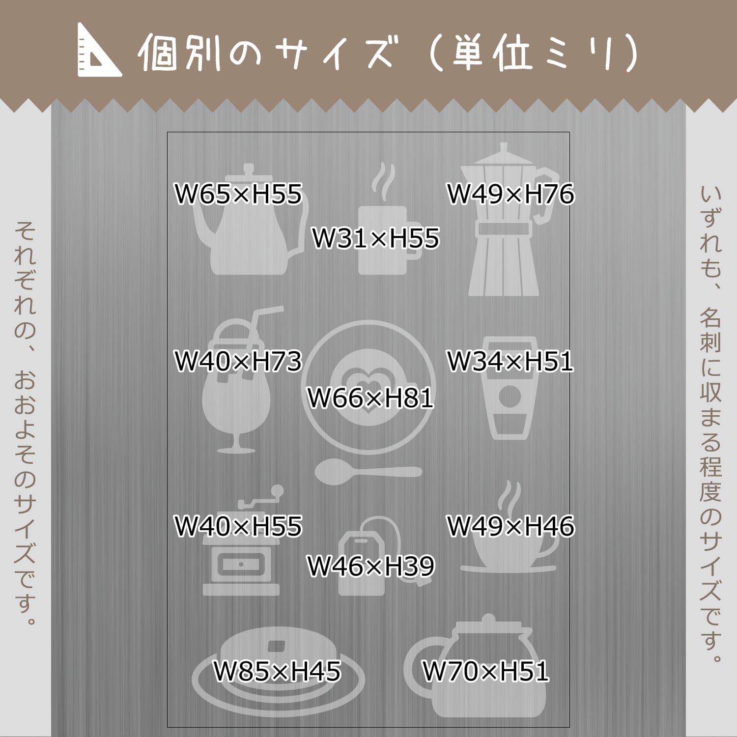 ◎個別のサイズは画像でご確認ください。いずれも名刺に収まる程度のサイズです。